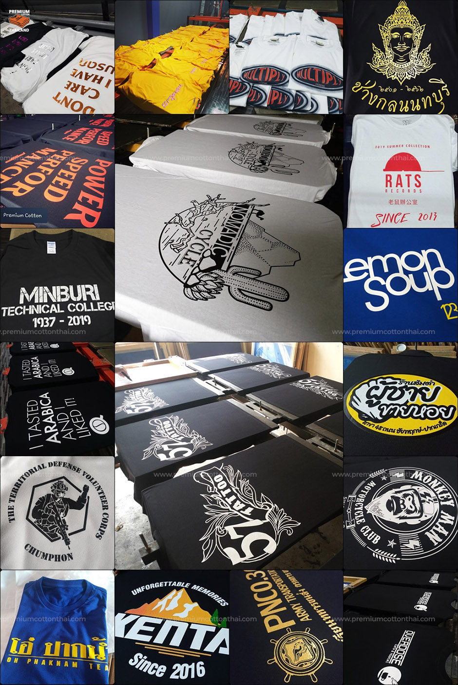 เสื้อพร้อมสกรีนโลโก้ ไม่จำกัดสี ไม่มีขั้นต่ำ งาน DFT/DTG ปริ้นเสื้อด่วน เสื้อคนงาน ผ้ากันเปื้อน เสื้อโปโล เสื้อกลุ่ม เสื้อวินเทจ เสื้อราคาส่ง คอกลม คอวี มีเสื้อให้เลือกกว่า 30 สี